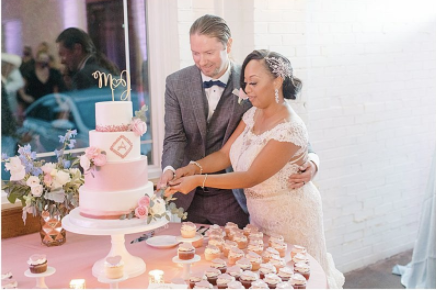 Couture Cakes created a beautiful custom four-tiered wedding cake for Miranda and Joe.